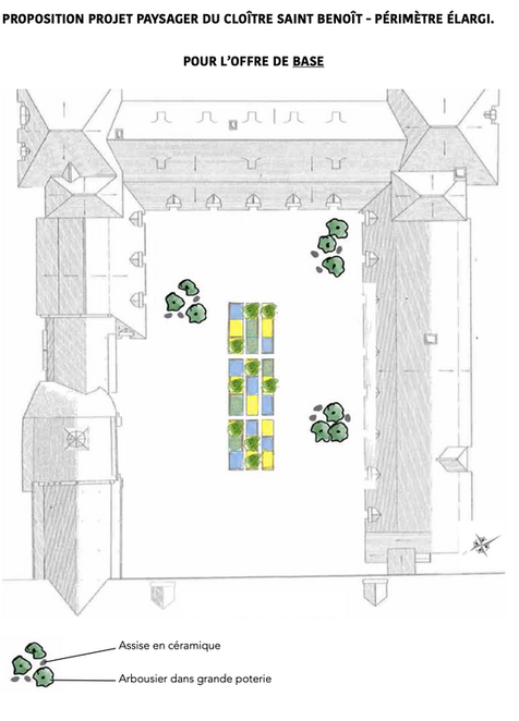 Un appel d'offre pour végétaliser sous contraintes le cloître Saint-Benoît de l'Abbaye de Fontevraud.