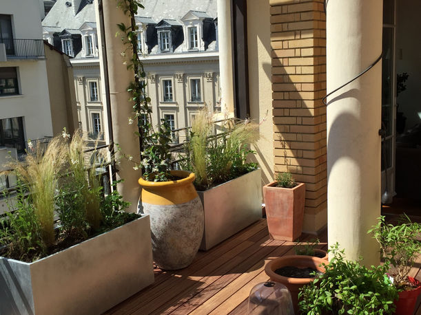 Petite terrasse nichée au dernier étage, au calme et en retrait de la rue, le dépaysement